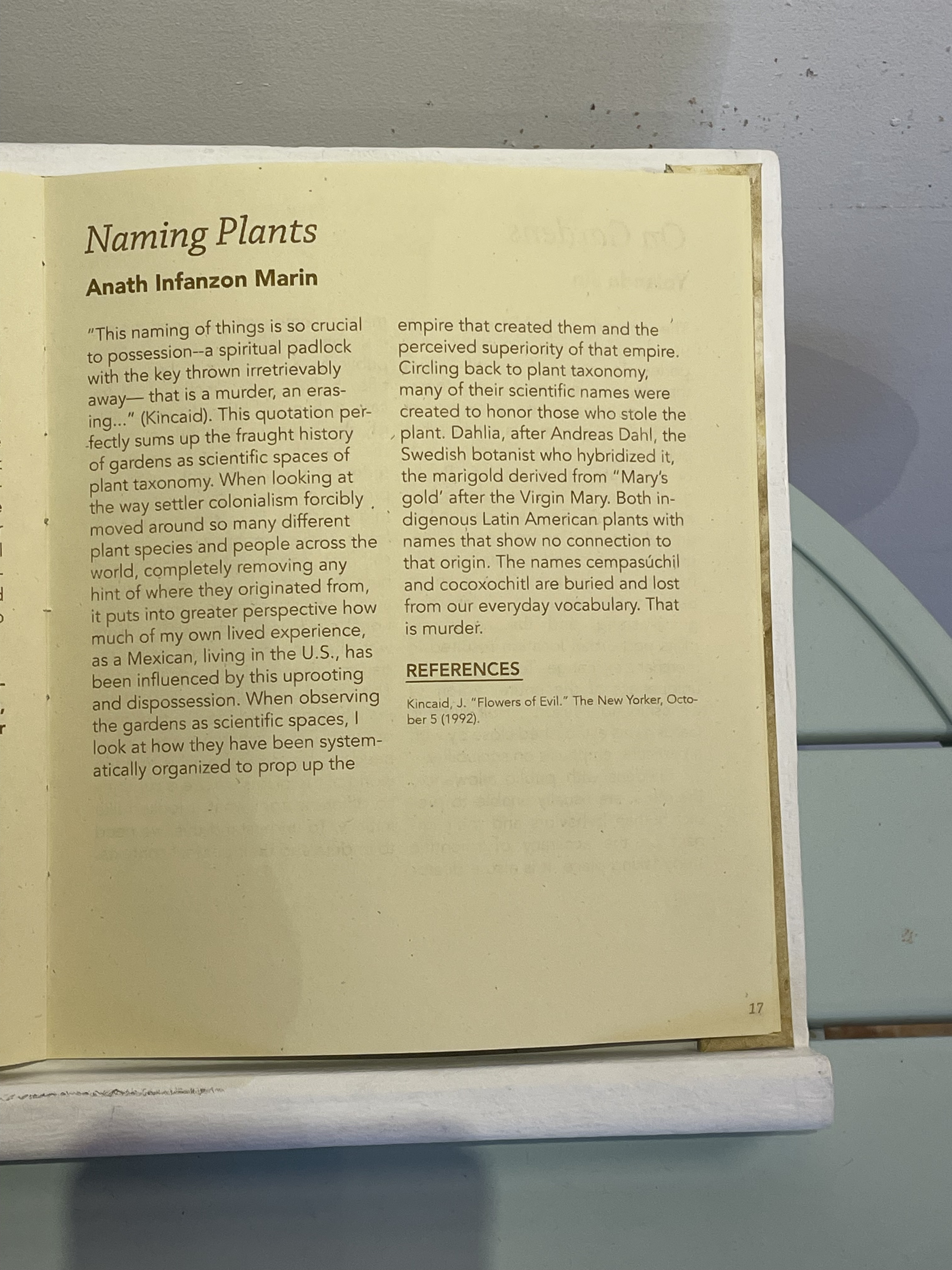By positing the land as empty, settler colonialism conceals violent, extractive land practices, in the name of improving 'vacant' land. The Buckthorn plant's devastation of indigenous ecosystems is an example of this process. However, the act of disposing invasive species risks reproducing colonial logics of extraction. By reusing uprooted Buckthorn bark as a natural dye in a communal artwork, No Such Thing as Vacancy showcases that art plays a role in redressing botanic histories. This exhibition was created in collaboration with the students of enrolled in ARTHI 4024-001 and the Lawndale Pop Up Spot.